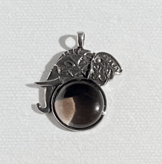 Aged Smoke Obsidian Elephant Pendant